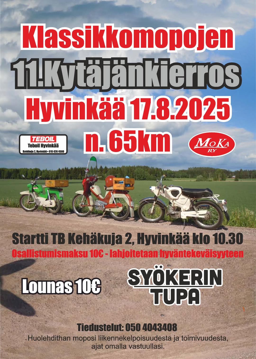 Ajomatka n 65 km. Osallistumismaksu 10 € lahjoitetaan hyväntekeväisyyteen.